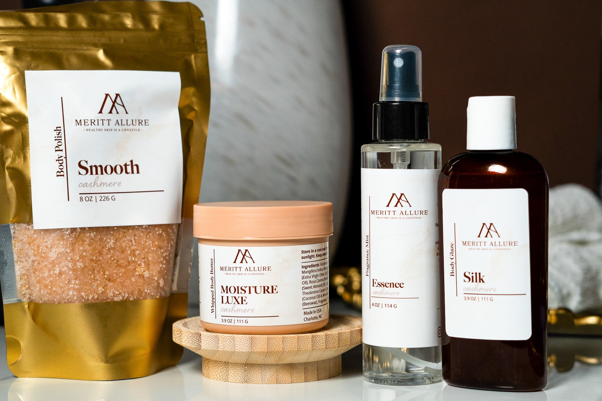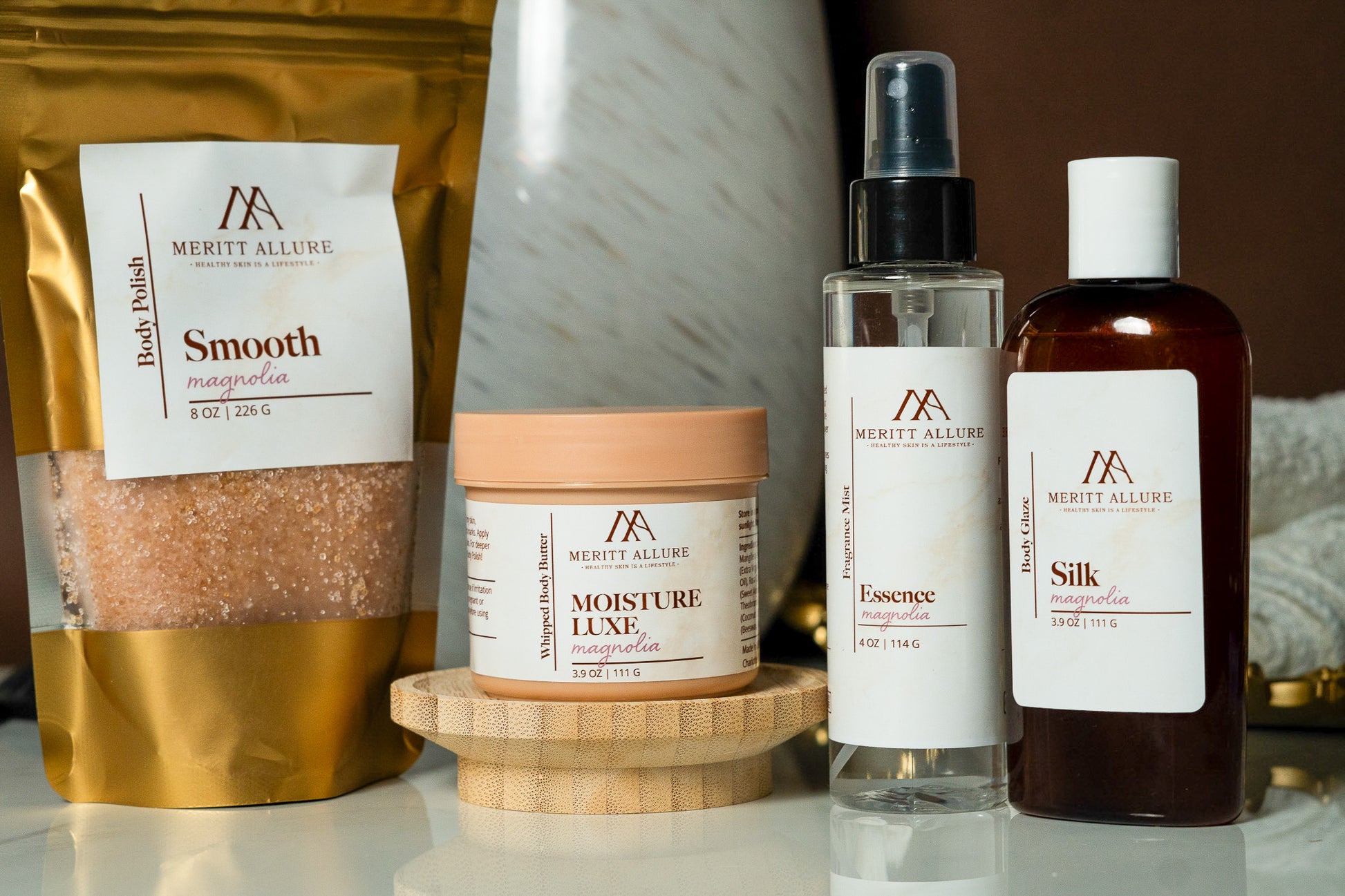 A light, refreshing body spray that enhances your scent and adds a soft, lasting finish to your self-care routine. Designed to complement your favorite Meritt Allure butters, oils, and lotions, or layer with perfumes and colognes.